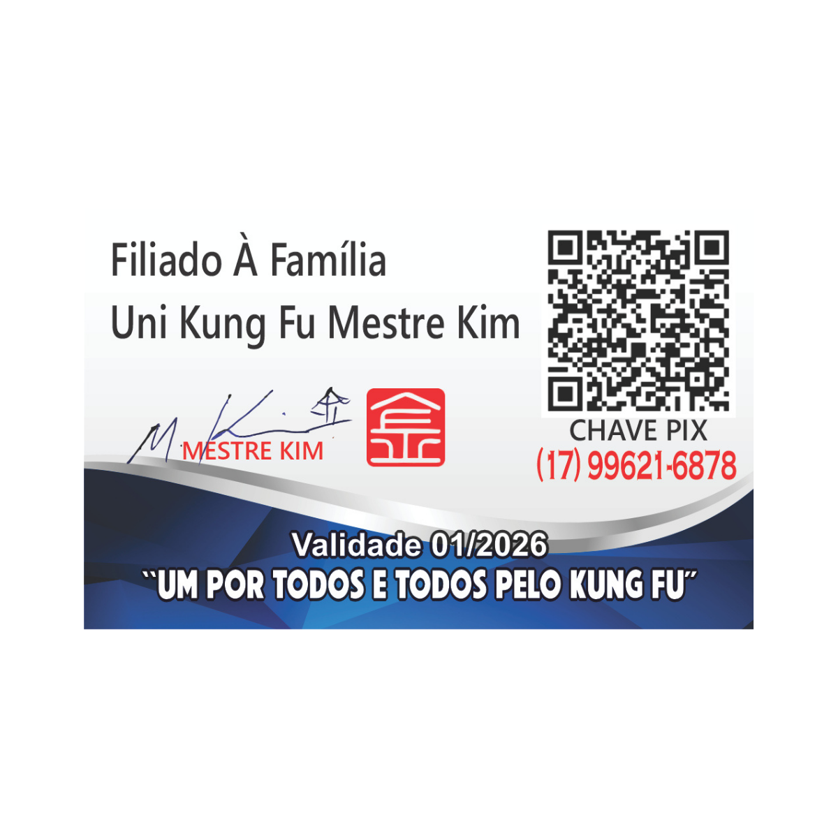 Apresentamos a **Identidade Kung Fu Oficial em PVC** — o cartão que comprova seu vínculo, sua honra e seu lugar em nossa linhagem.